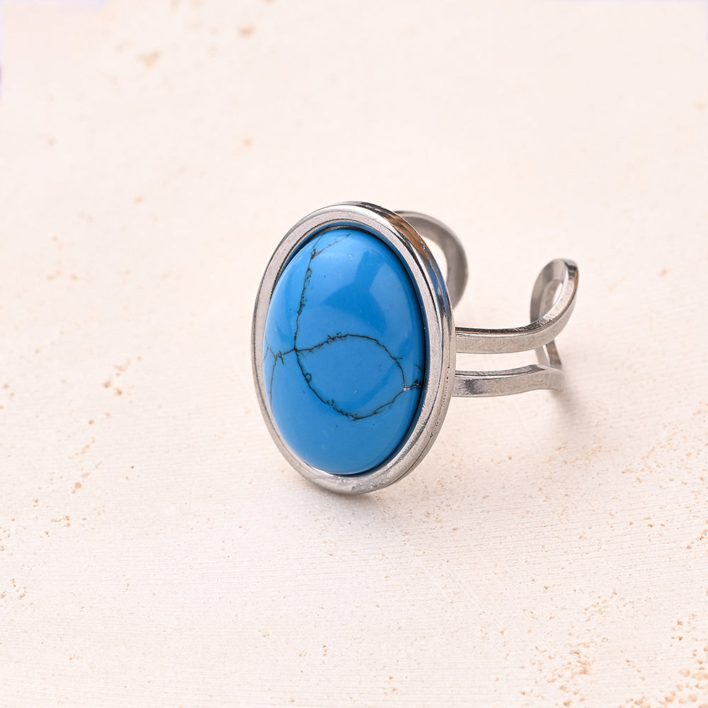 De Natural Stone Ring is een tijdloos sieraad dat natuur en elegantie samenbrengt. Elke ring is voorzien van een ovaal geslepen natuurlijke steen, met de hand afgewerkt in zilver. Dankzij het verstelbare ontwerp past deze ring comfortabel om elke vinger – perfect om te mixen, matchen en elke dag te dragen.